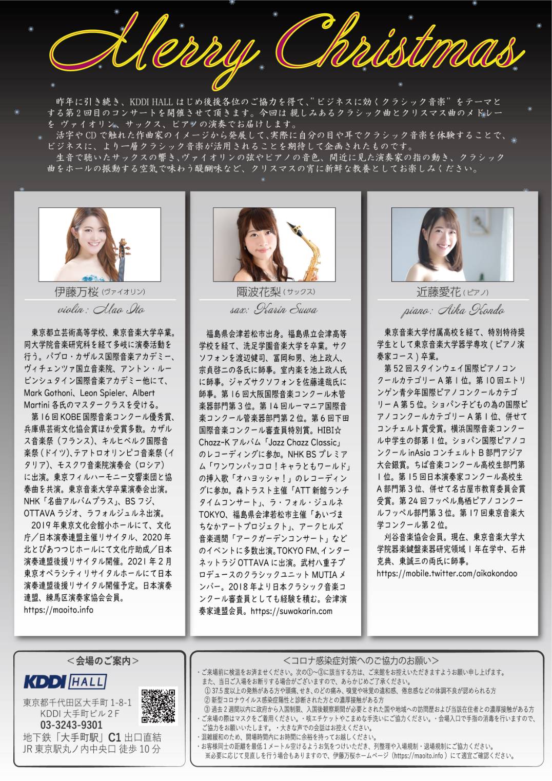 ヴァイオリン・サックス・ピアノによるクリスマスコンサート