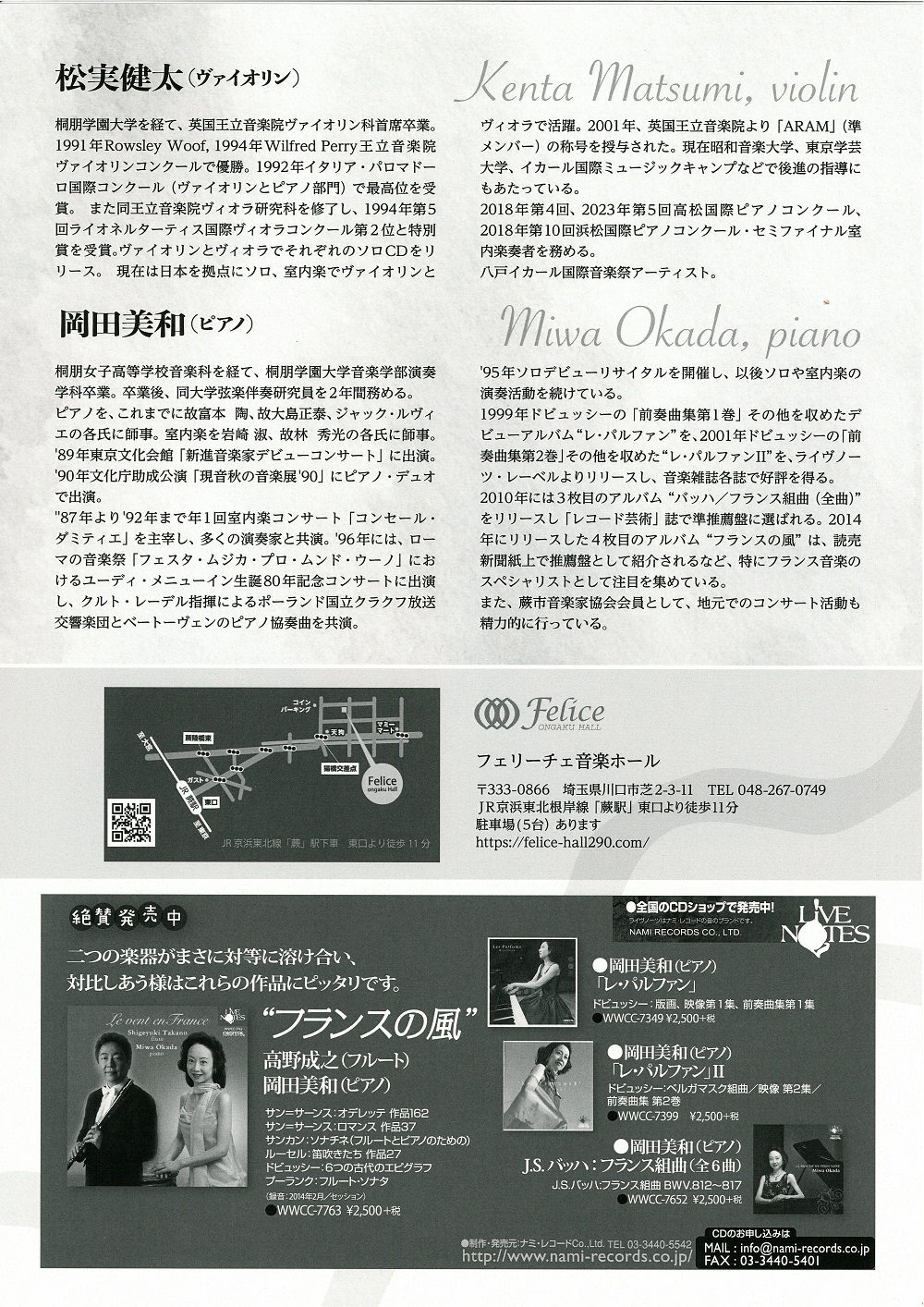 岡田美和 室内楽シリーズ ヴァイオリン&ピアノ デュオコンサート