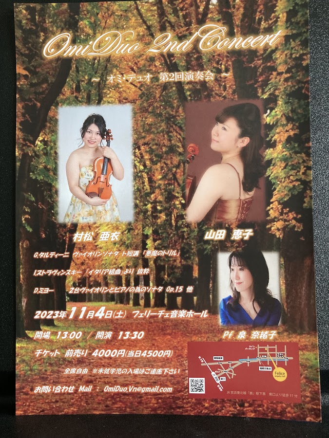 オミ・デュオ 第2回演奏会 vn 松村亜衣、vn 山田恵子、pf 泉奈緒子