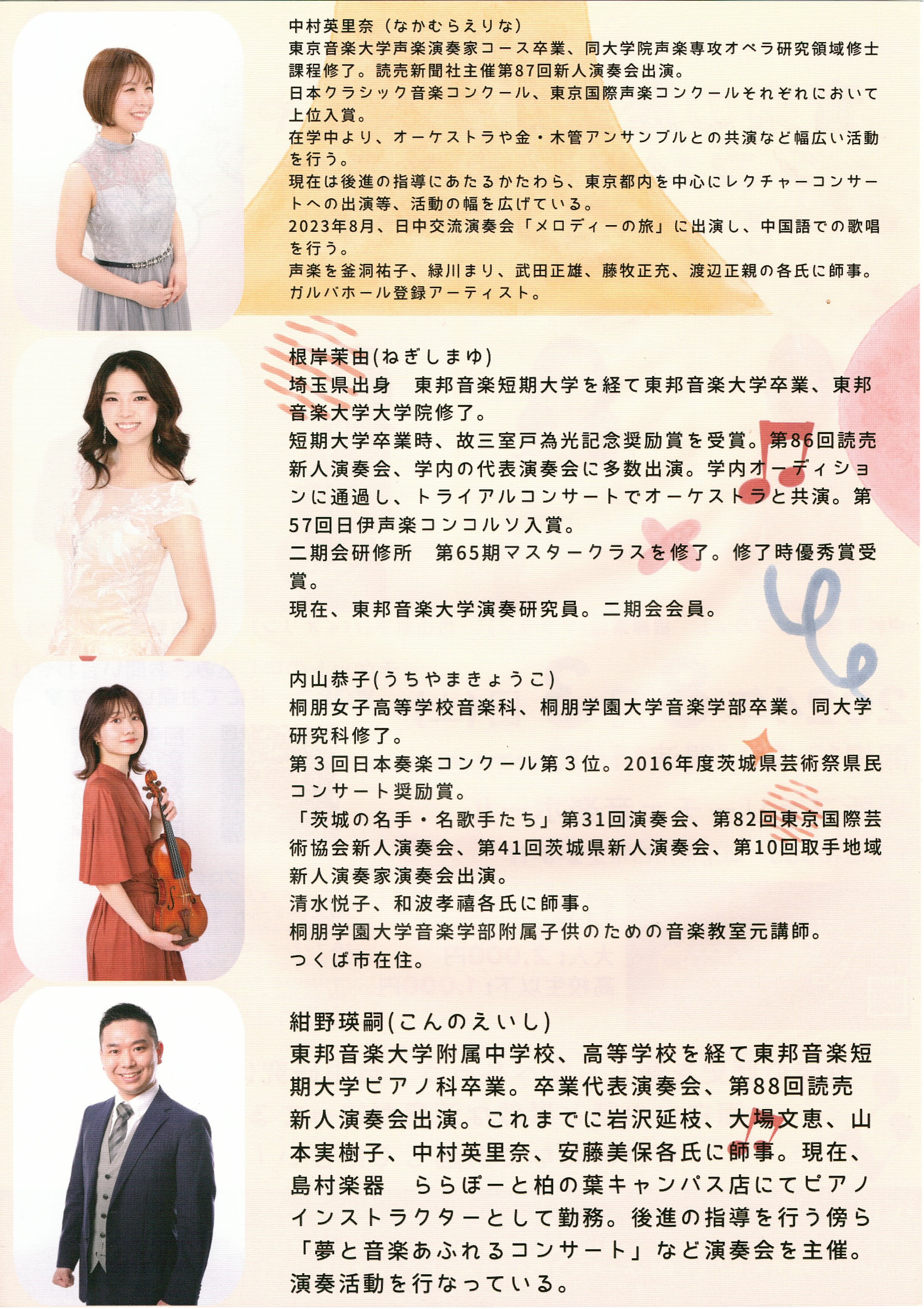 中村 衣里奈(ソプラノ)、根岸 茉由(ソプラノ)、内山 恭子(Vn)、紺野 瑛嗣(Pf)