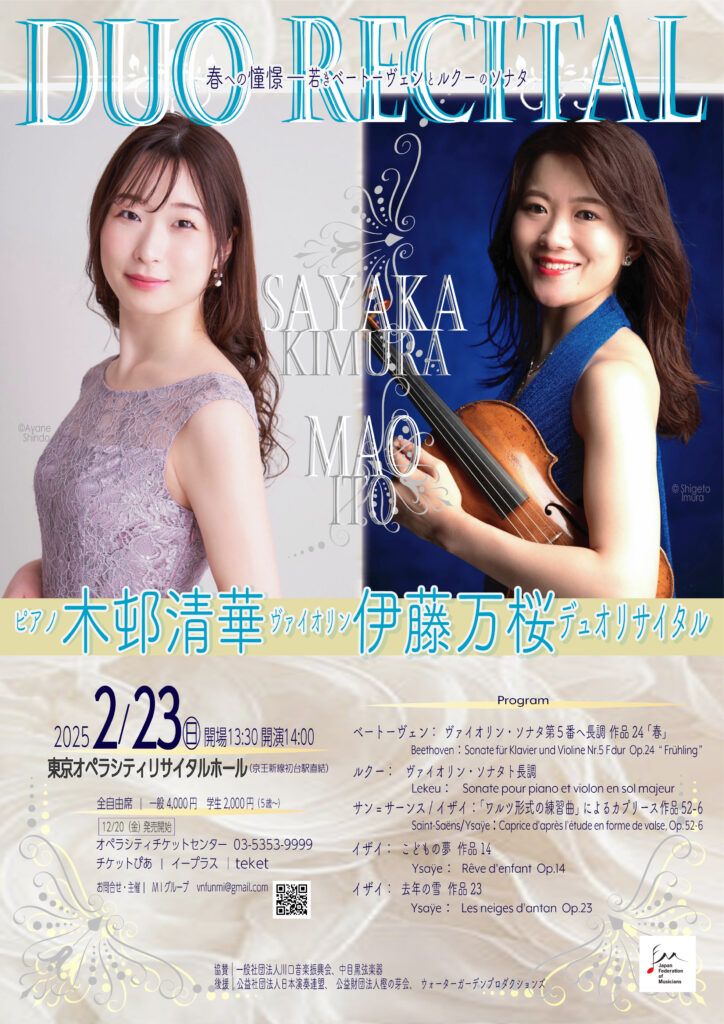 ピアノ 木邨 清華、ヴァイオリン